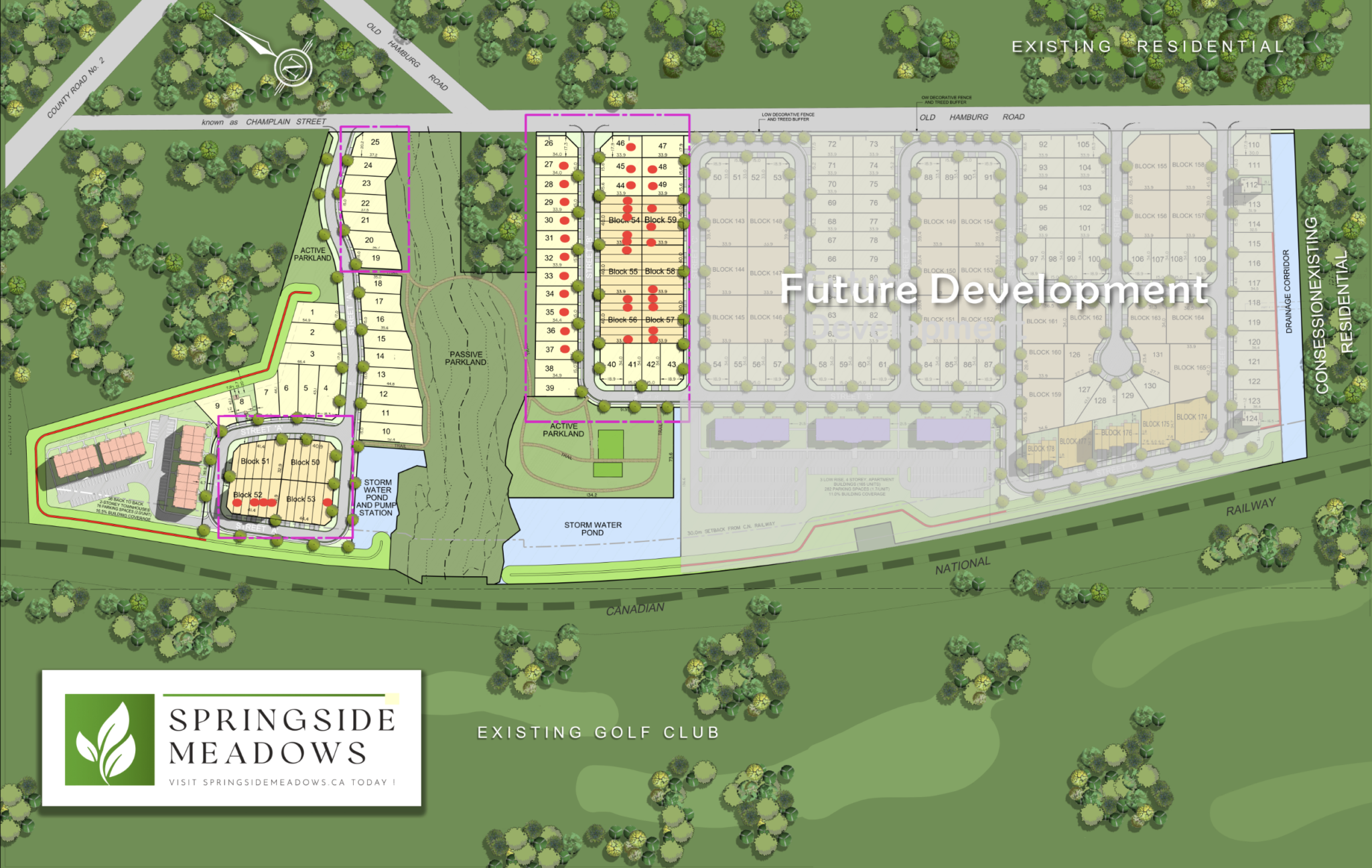 Springside Meadows is just around the corner from Springside Park and riverside trail through to a skate park, river tours and there is so much more trails, parks to discover all in your backyard as the site itself boasts over 15 acres of parks, ponds and passive greenspace.